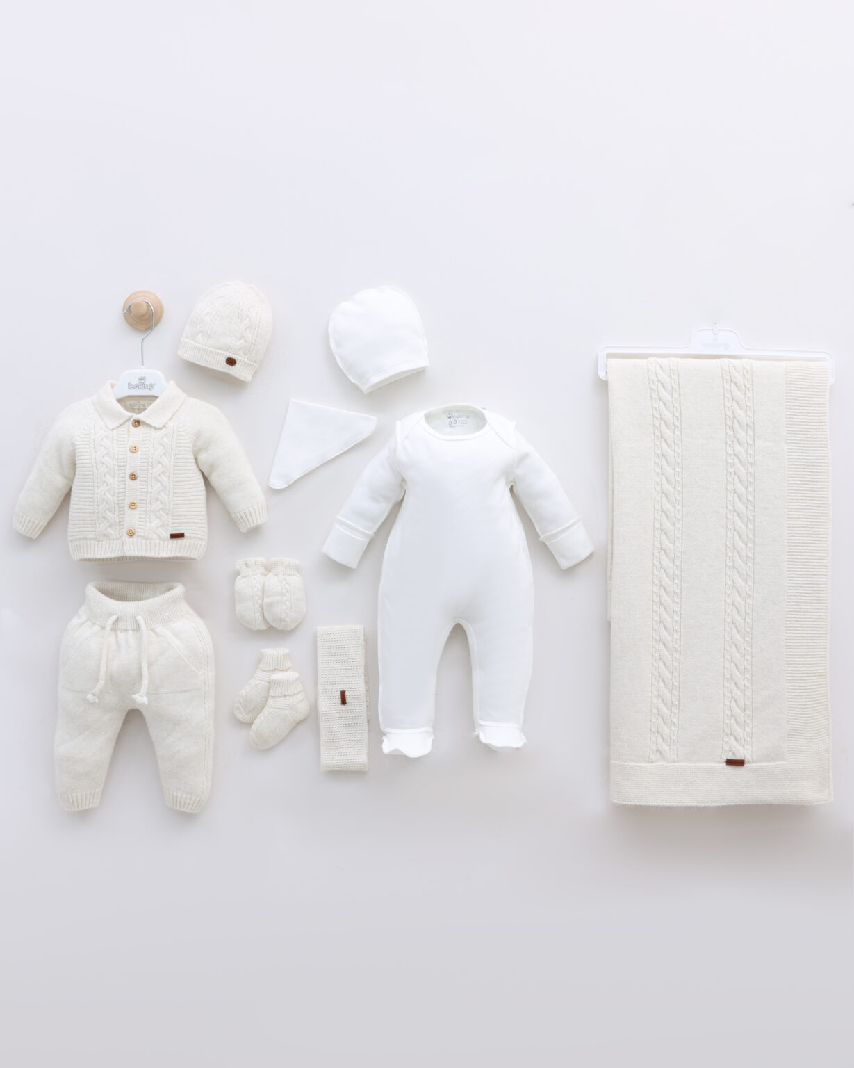 Set Materniteti – 10 Pjesë Merino Wool (0–3 muaj) I bardhe