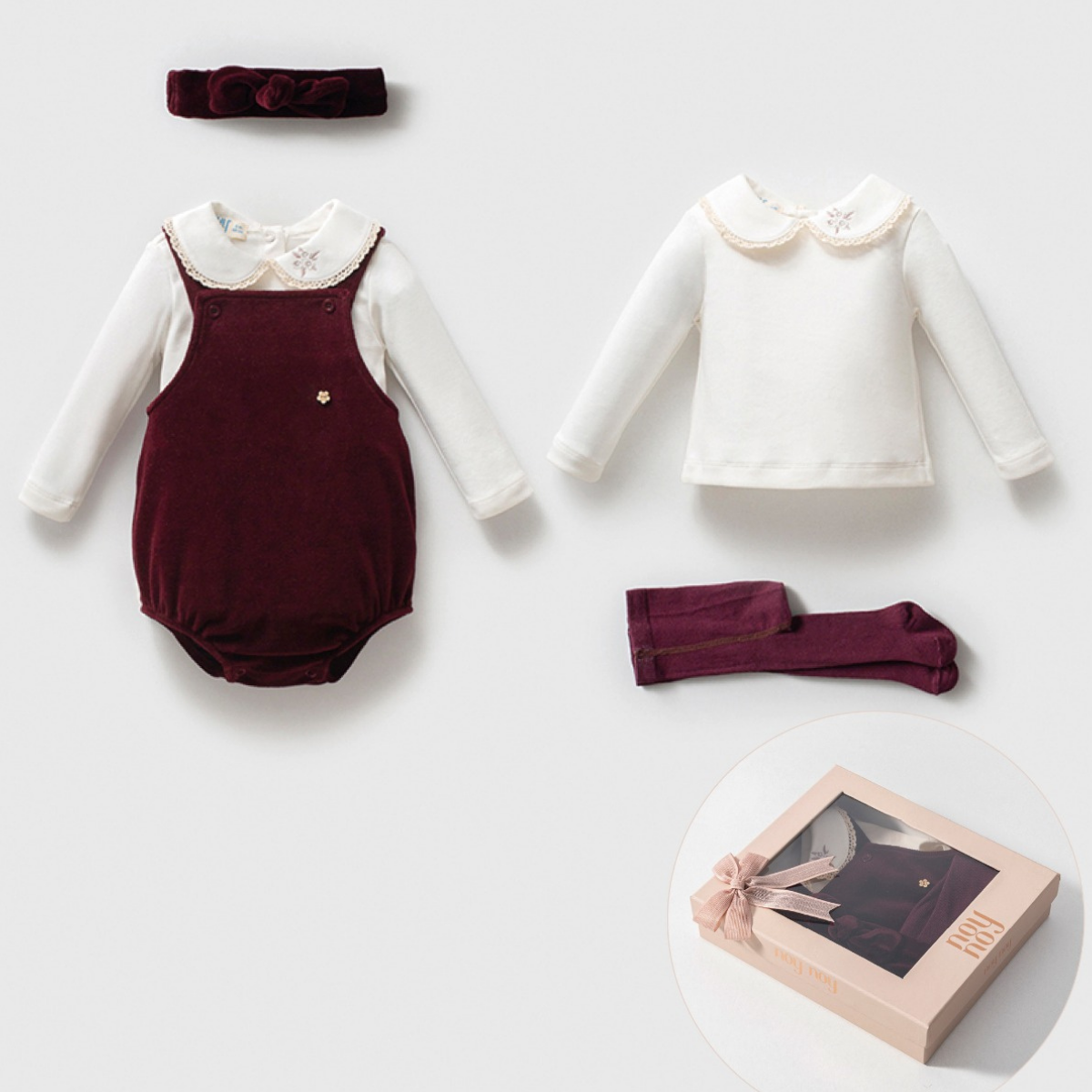Set Vajzash në Kuti – 4 Pjesë: Romper, Bluzë Kordele & Geta