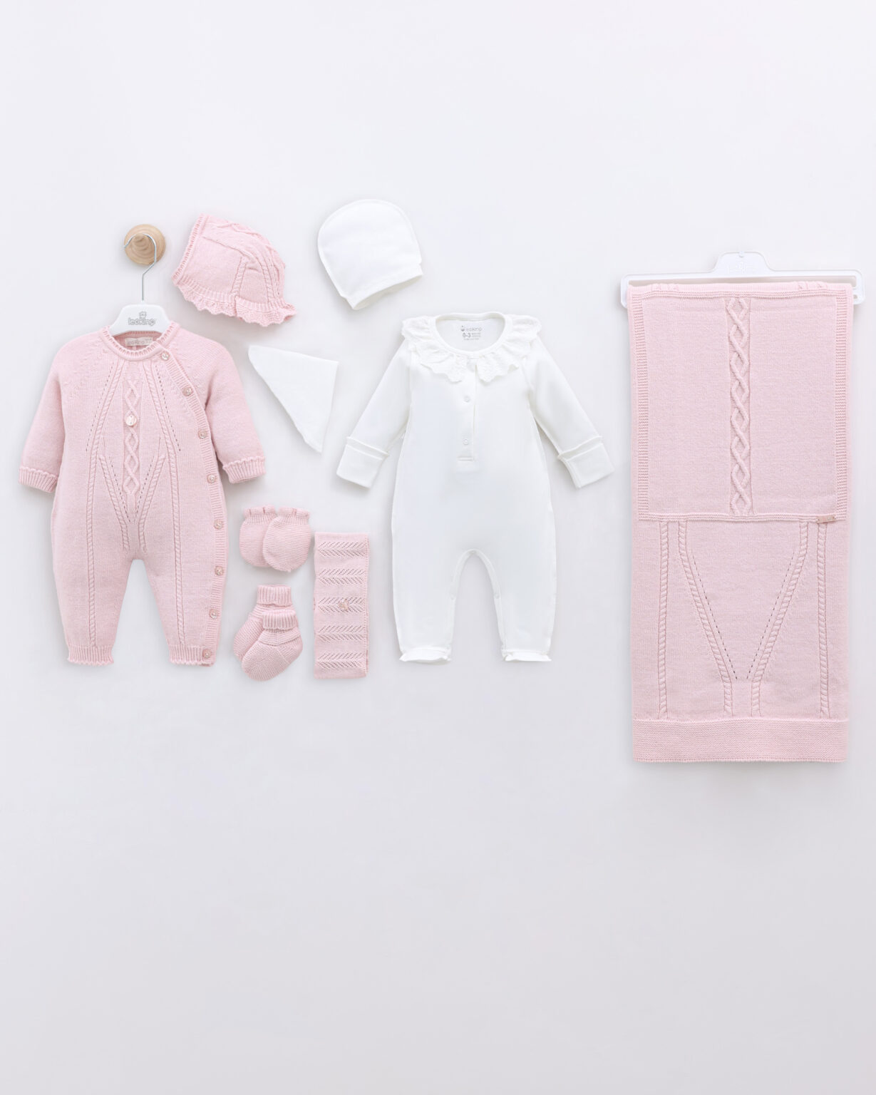 ✨ Set Materniteti – 9 Pjesë Merino Wool (0–3 muaj) ✨ Roze