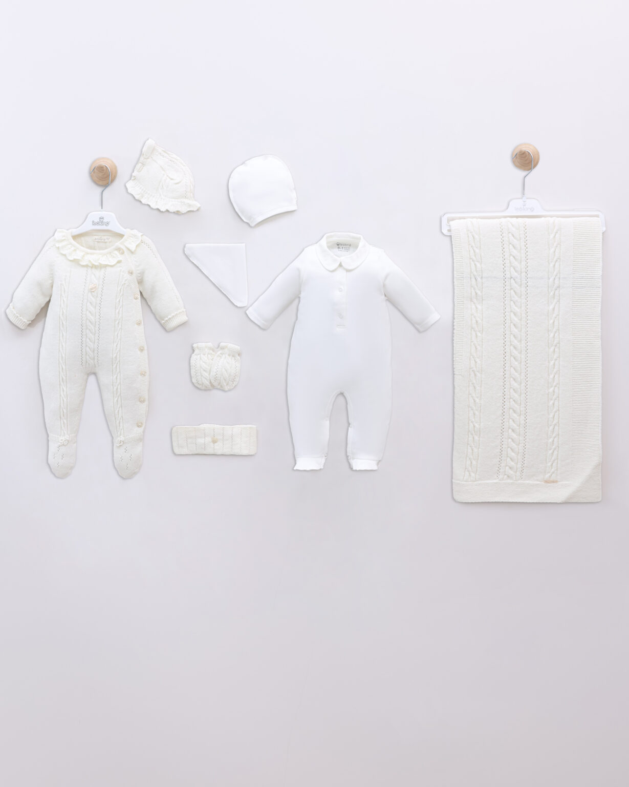 ✨ Set Materniteti – 9 Pjesë Merino Wool (0–3 muaj) ✨ I bardhe