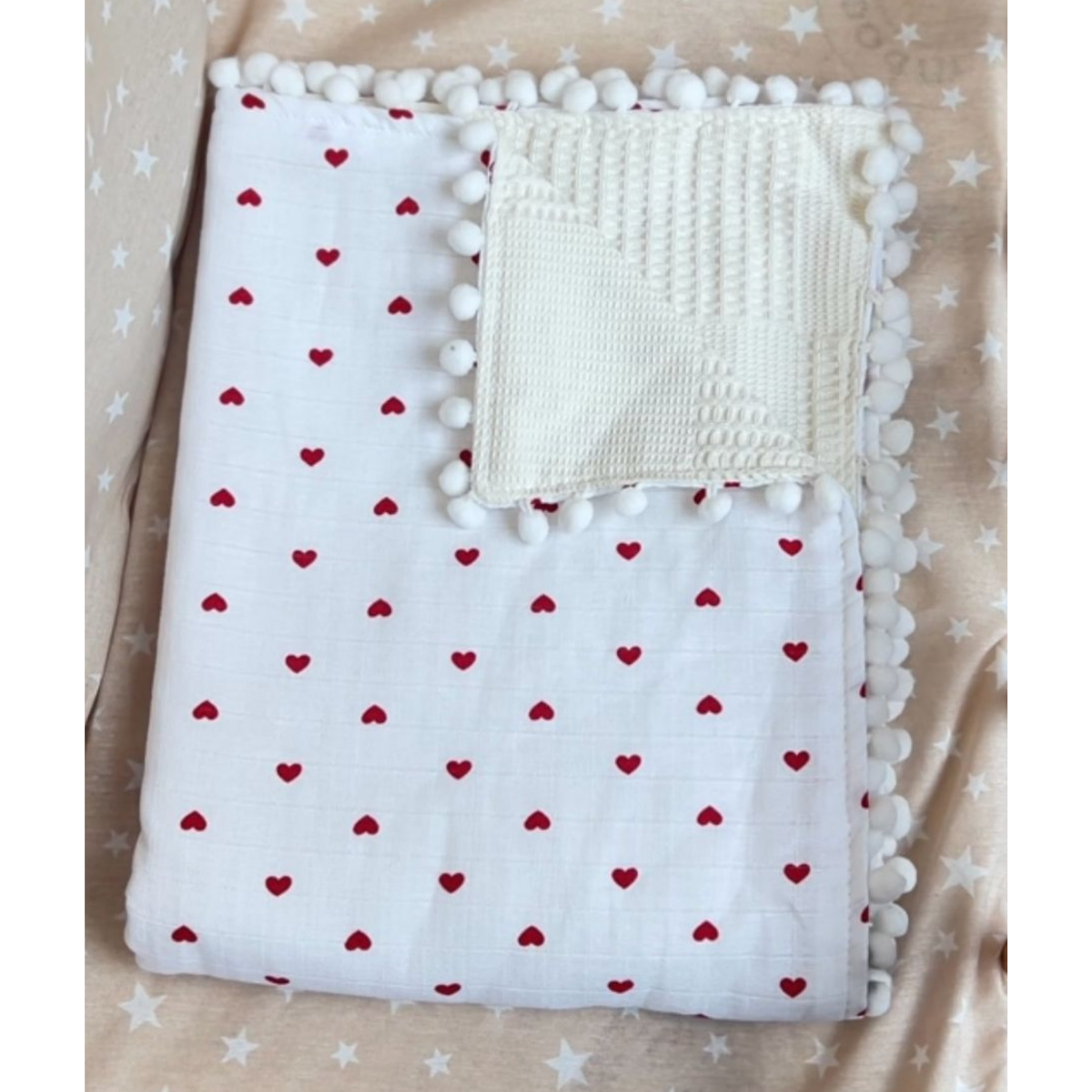 Batanije për Bebe – Me Zemra të Kuqe, 100×100 cm