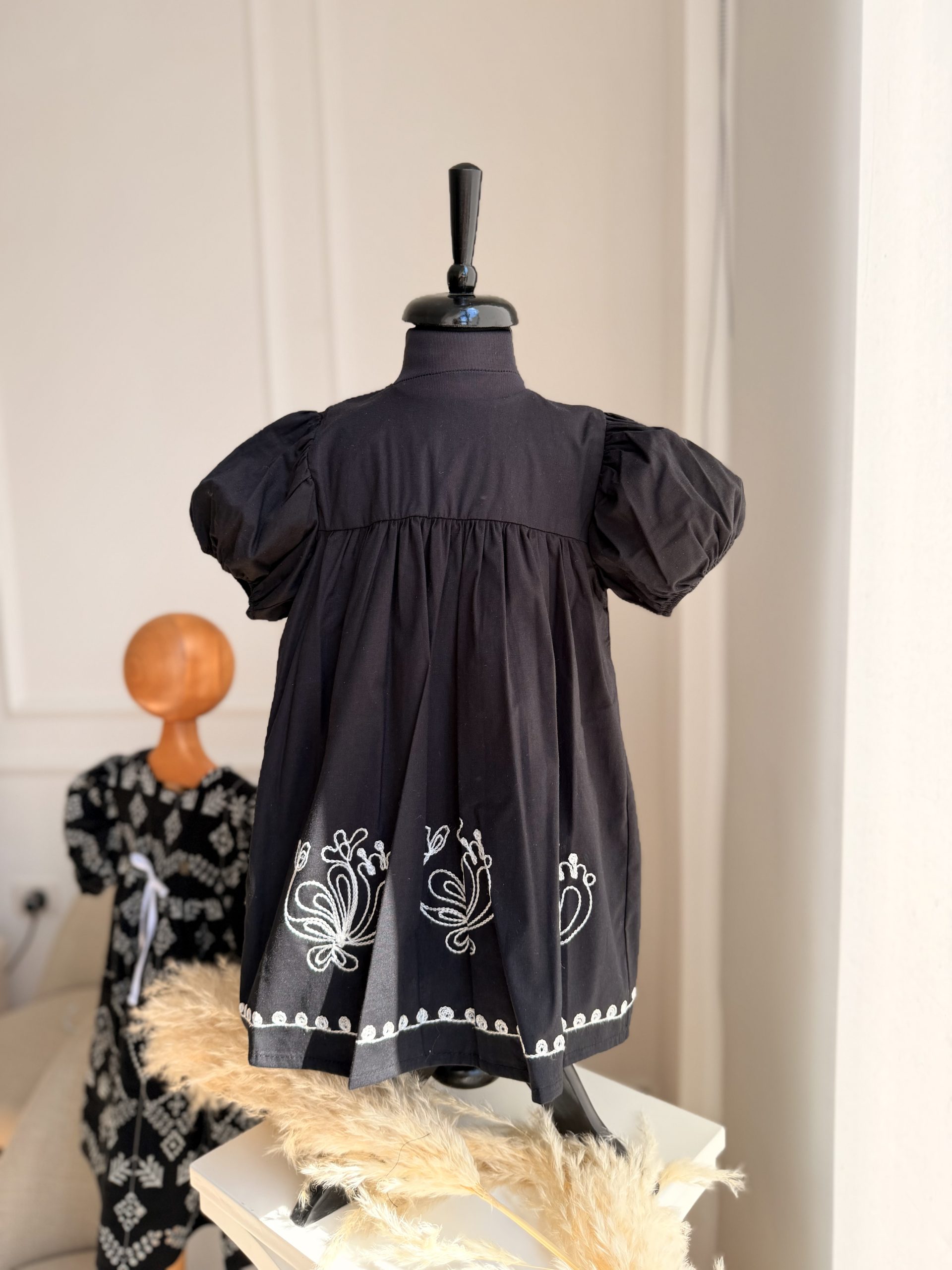 Fustan i zi me lule te bardha •• i lehte , i fresket •• me menge pak te fryra •• modern dhe fashion